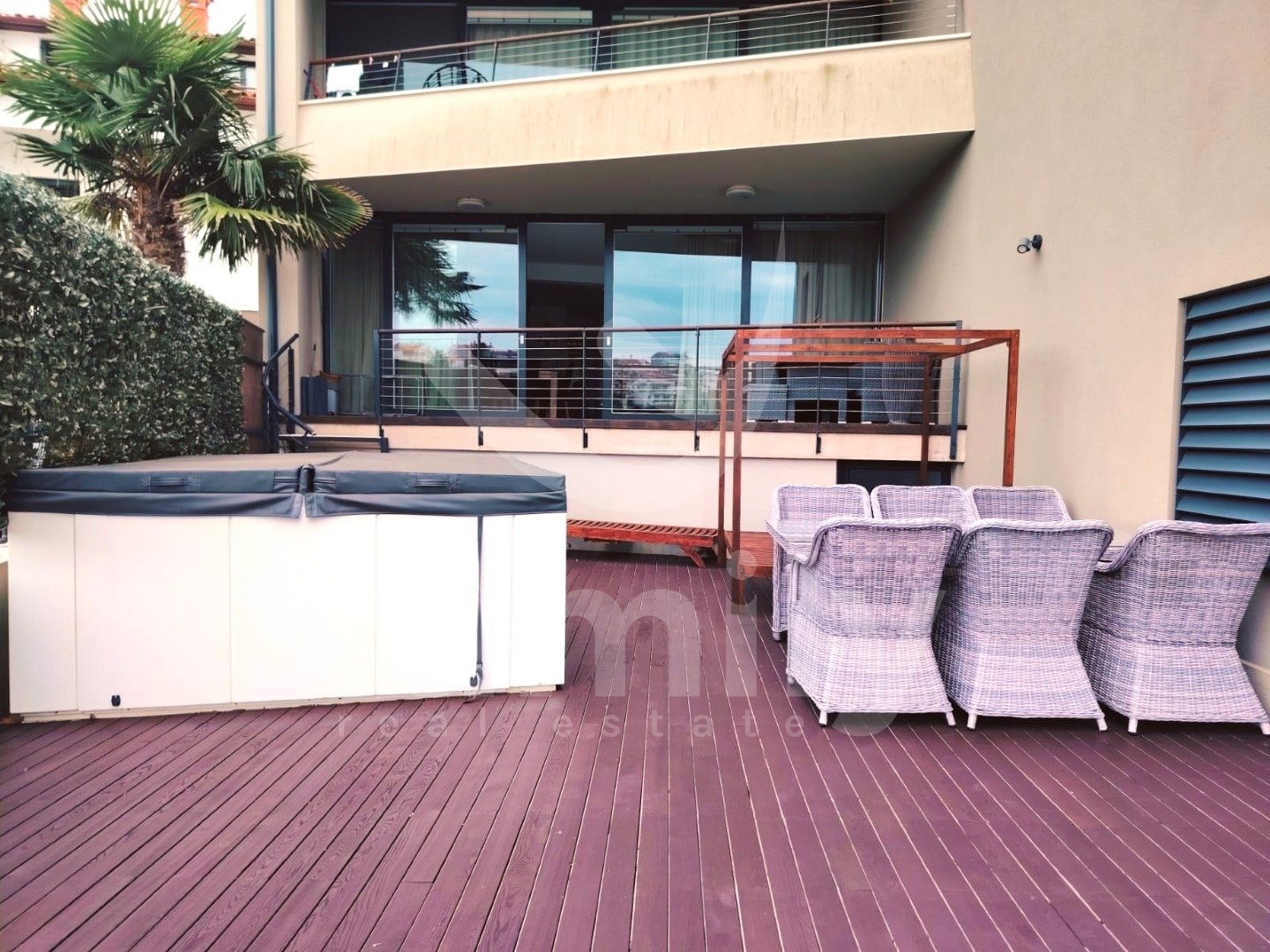 Nepremičnina ima kamnito stopnišče, tla so prekrita z visokokakovostnimi ploščicami. Ta čudovita nepremičnina ima aluminijaste troslojne stene, centralno električno talno ogrevanje, klimatske naprave, termo fasado in energetski certifikat A+. Stanovanju pripadata dve parkirni mesti, eno v garaži in drugo pred stavbo.