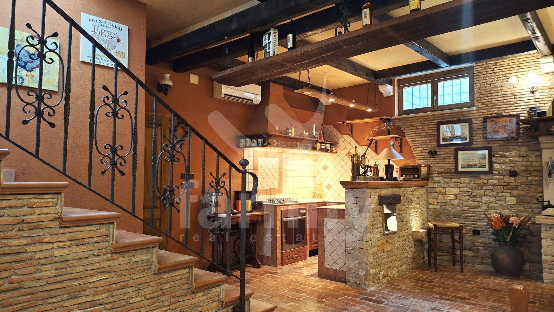 To čudovito stanovanje velikosti 110 m2 v dveh nadstropjih v pritličju stanovanjske stavbe se nahaja v Rovinju, nedaleč od morja. Stanovanje je sestavljeno iz vhodnega prostora, ki vodi v dnevno sobo, povezano z visokokakovostno kuhinjo, ki vsebuje vse potrebne kuhinjske aparate. Na voljo je tudi ena udobna spalnica in kopalnica ter večja soba, ki se trenutno uporablja kot shramba. Notranje stopnice vodijo v klet, iz katere je bila narejena lepa, prostorna konoba. Stanovanje ima PVC stavbno pohištvo, tla so ploščice, ogrevanje in hlajenje pa regulirajo tri klimatske naprave in kamin na drva. Pred stanovanjem je udobna terasa.