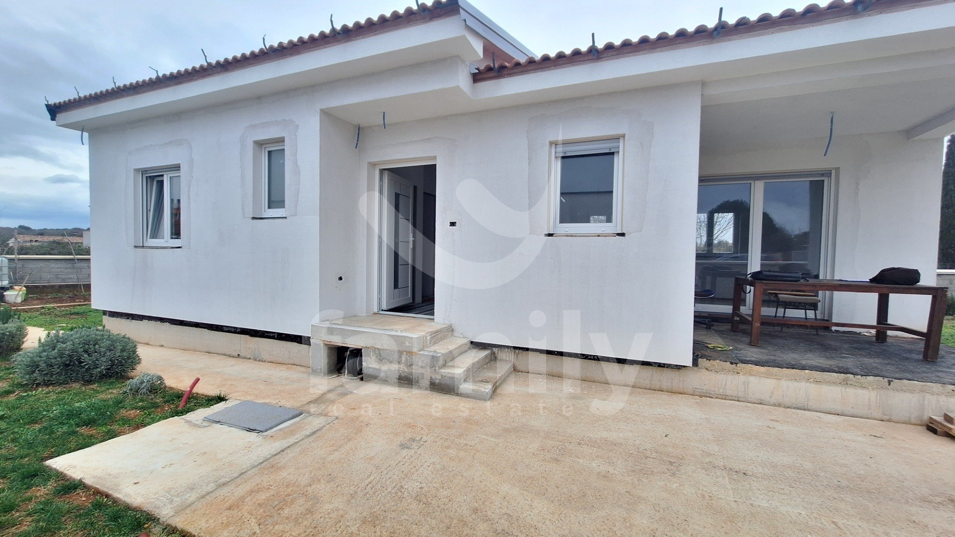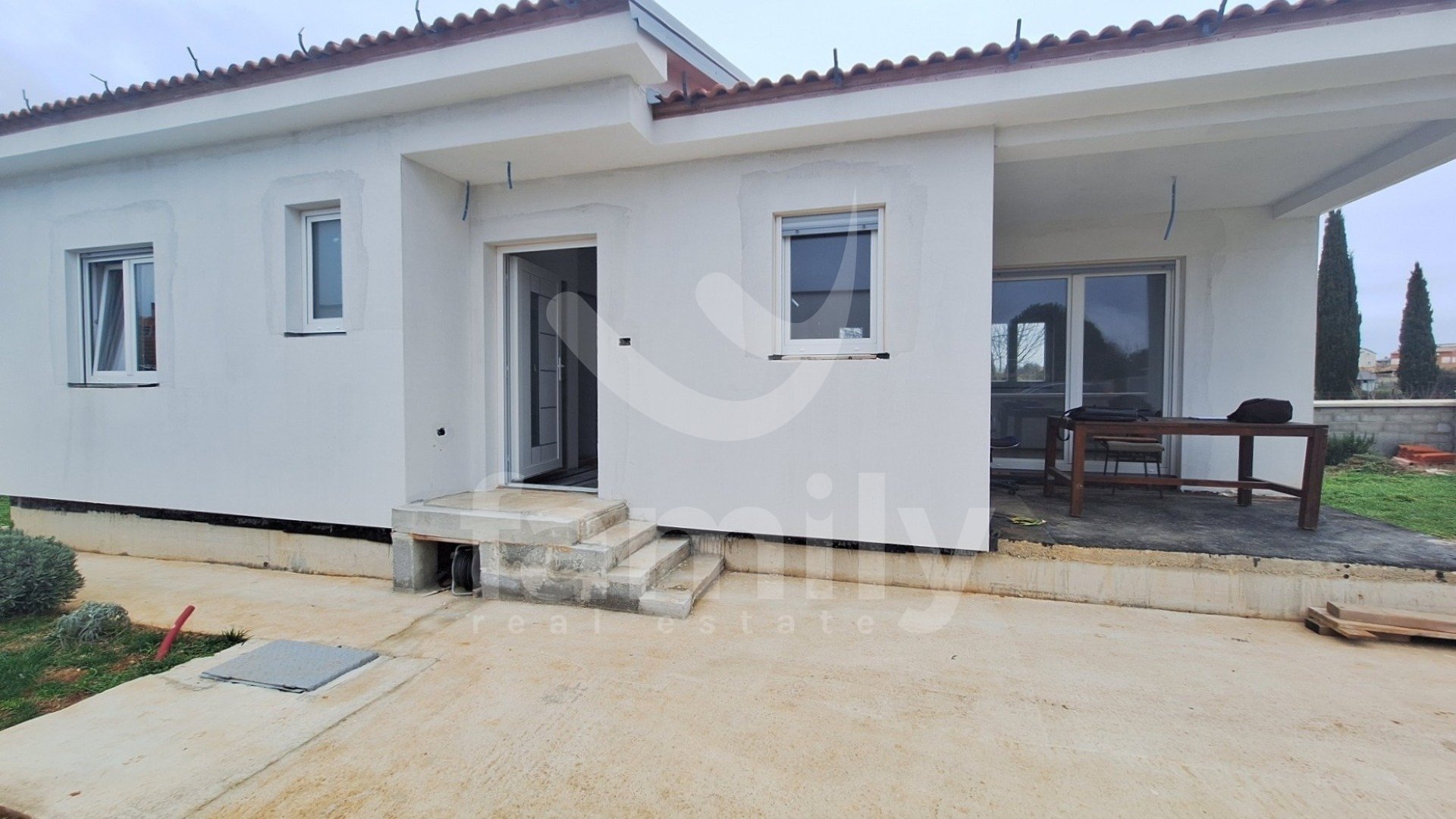 V bližini mesta, v mirnem in novem naselju v Pulju, se prodaja moderna montažna hiša. Hiša ima skupno bivalno površino 100 m², nahaja se na urejeni parceli velikosti 439 m², idealni za družinsko življenje ali investicijo.