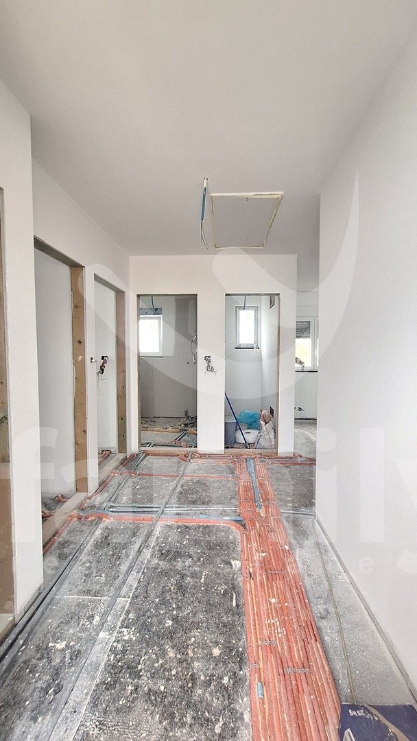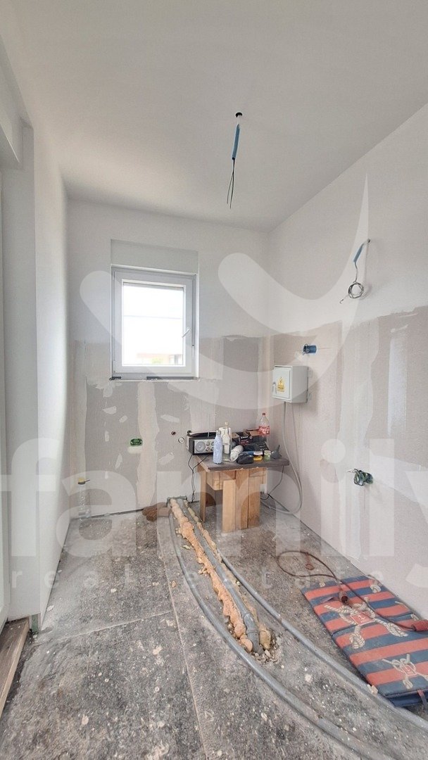 Hiša ni dokončana - objekt je v gradnji, z zaključenimi osnovnimi gradbenimi deli, vendar brez dokončanih zaključnih detajlov. Potrebna so dodatna dela, da bo hiša popolnoma vseljiva. Hiša ima veljavno gradbeno dovoljenje, komunalni prispevek pa je v celoti plačan, kar bodočemu lastniku omogoča brezskrben prenos in uporabo nepremičnine. Vgrajena je tudi PVC stavbna pohištvo.