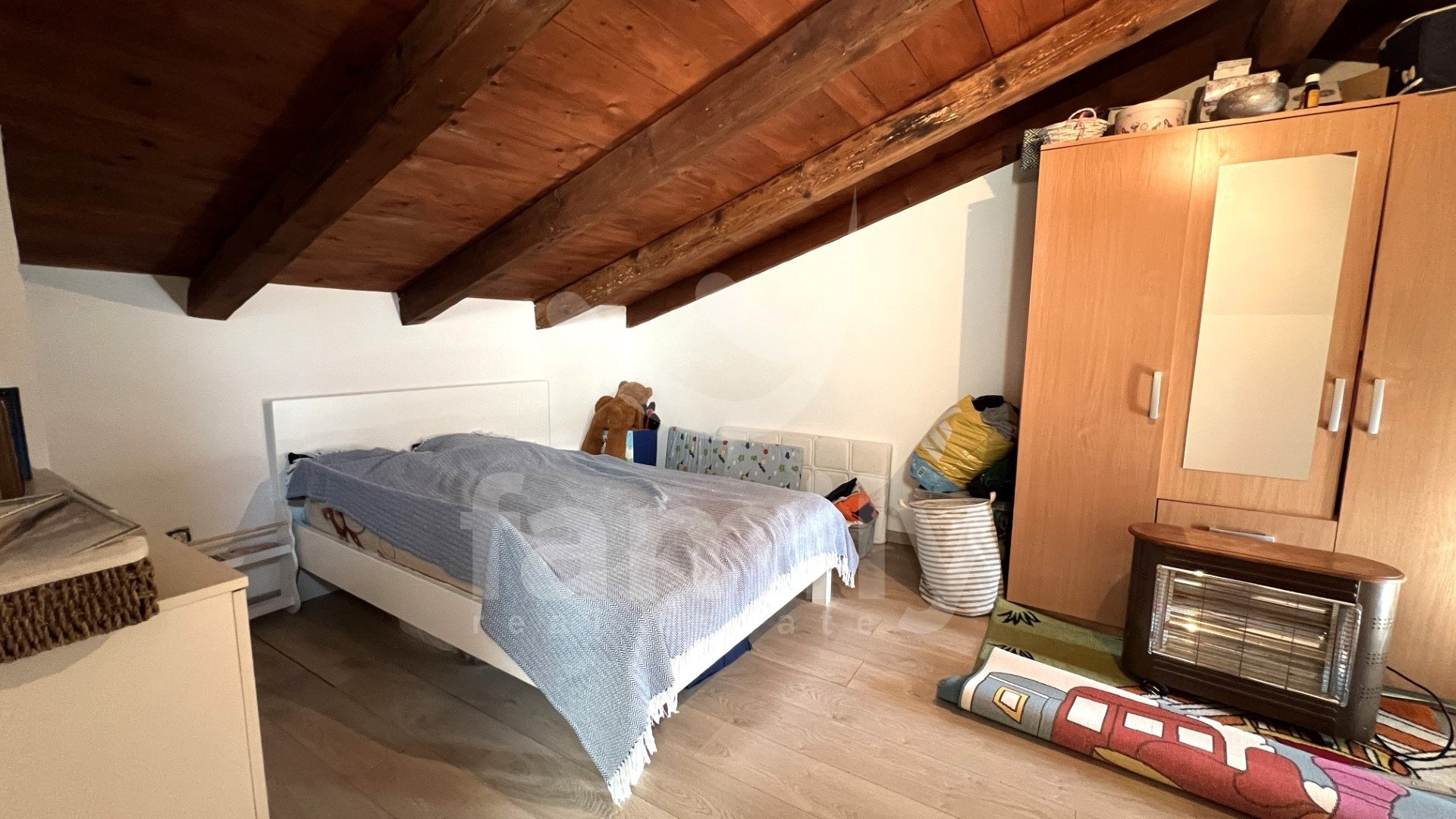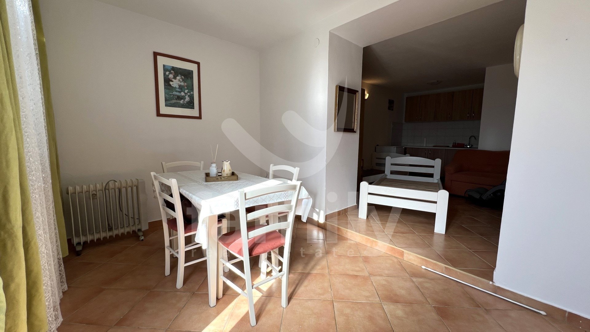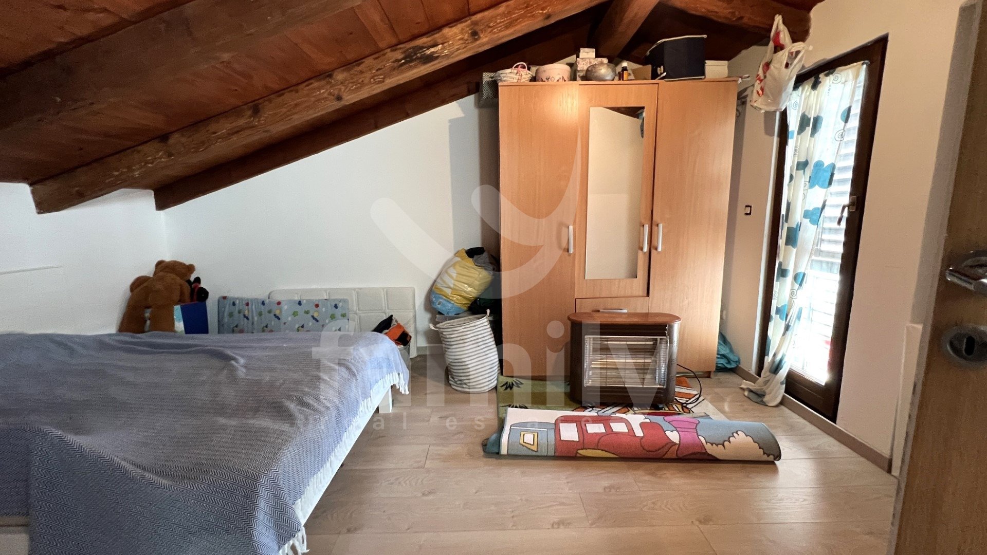 Gre za vrstno hišo s skupno bivalno površino 105 m2, ki je funkcionalno razdeljena na več stanovanjskih enot. V pritličju sta dva ločena manjša apartmaja, vsak opremljen s kuhinjo, jedilnico, dnevno sobo in kopalnico, zaradi česar sta idealna za turistični najem ali nastanitev gostov. Zunanje stopnice vodijo v prvo nadstropje, kjer se nahaja prostornejše stanovanje, ki ga sestavljajo kuhinja, jedilnica, svetla dnevna soba in kopalnica. Iz stanovanja notranje stopnice vodijo v podstrešje, kjer sta dve udobni spalnici in dodatno stranišče. Tla v hiši so prekrita s kombinacijo keramike in laminata. Vgrajeno je leseno in PVC stavbno pohištvo, ogrevanje v prvem nadstropju pa je regulirano s pečjo na drva.