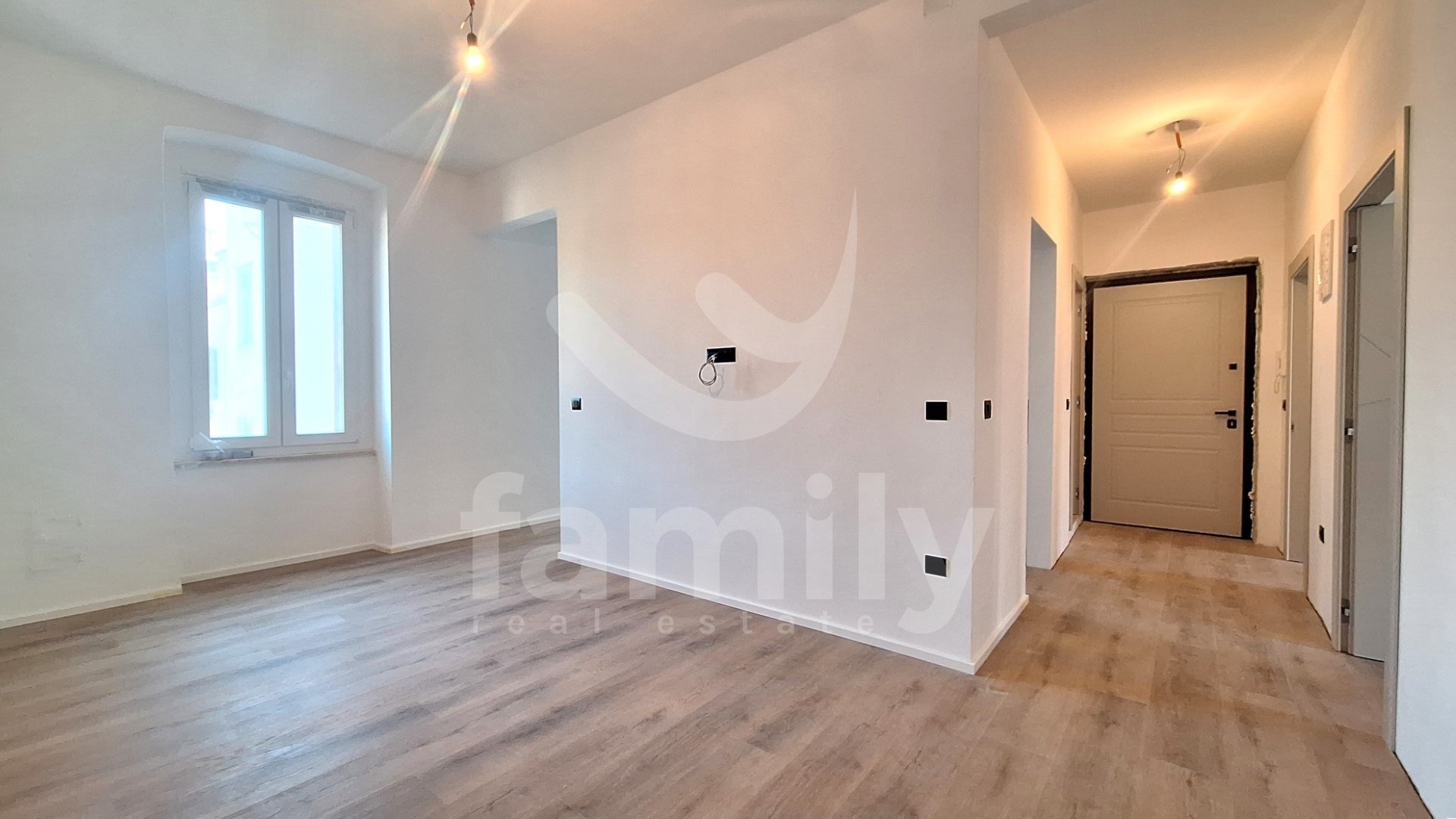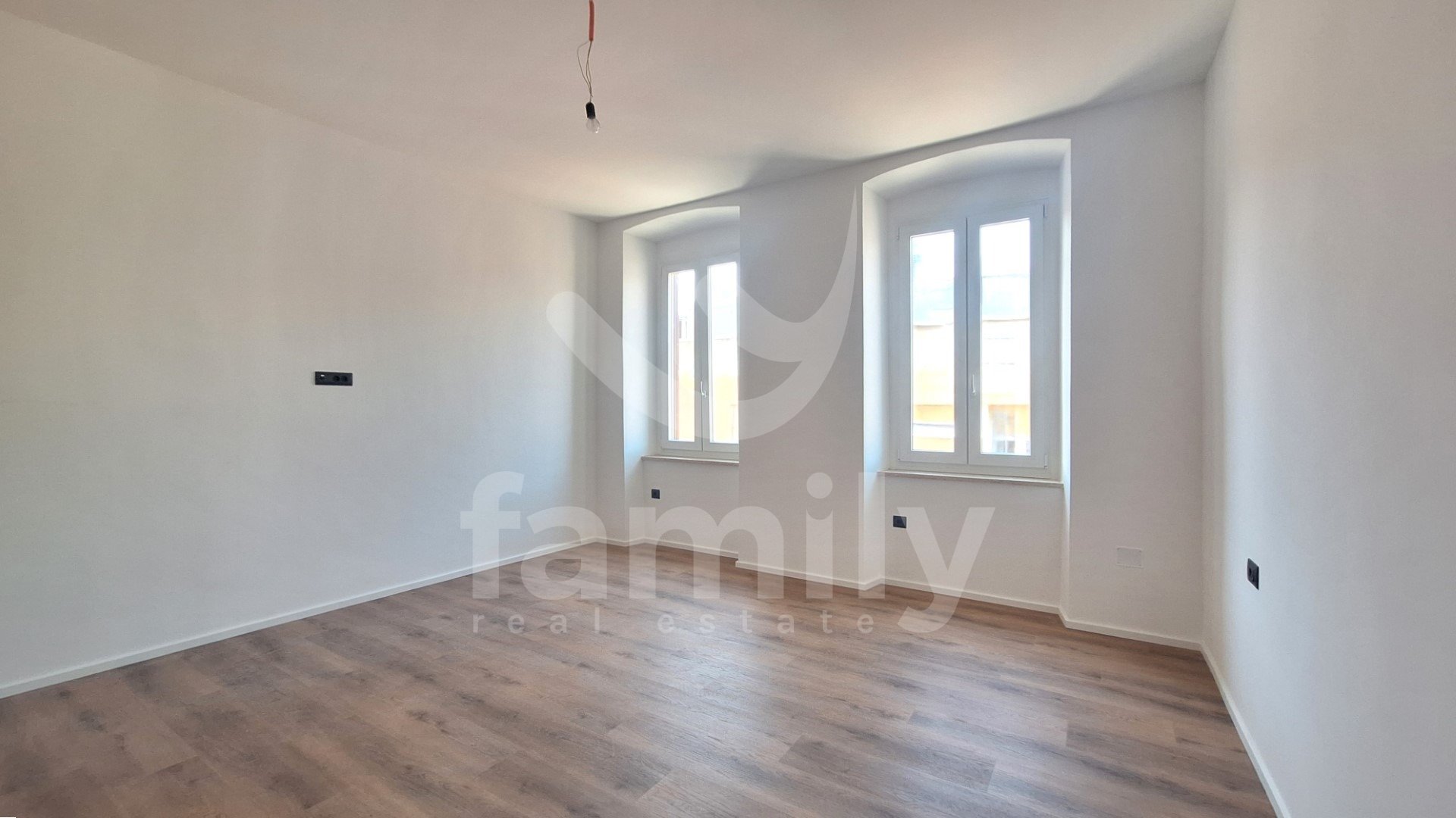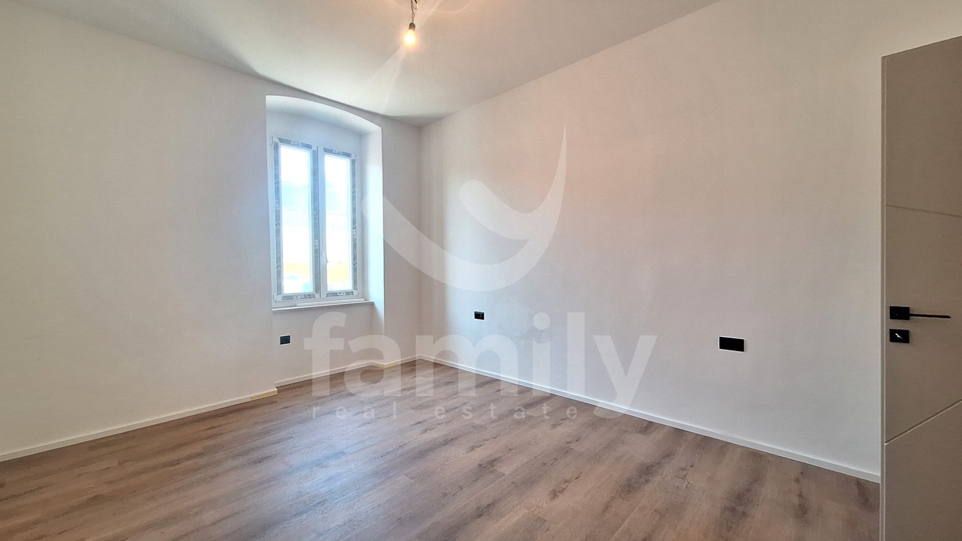 To prostorno, popolnoma prenovljeno stanovanje s skupno površino 73 m2 se nahaja v samem središču Pulja. Stanovanje se nahaja v drugem nadstropju in je sestavljeno iz hodnika, kopalnice, balkona velikosti 2 m2, dveh udobnih spalnic in kuhinje, povezane s prostorno in svetlo dnevno sobo. Med prenovo je bilo stanovanje popolnoma prenovljeno - nameščene so bile nove električne in vodovodne inštalacije, tla pa so prekrita z visokokakovostnim SPC vinilom. Kopalnica je moderna in vsebuje tuš kabino, izvedene pa so tudi inštalacije za pralni stroj, umivalnik s kopalniškim elementom in stranišče. V stanovanju so bila zamenjana tudi vsa notranja vrata, nameščena pa so bila tudi nova PVC stavbna pohištva s troslojno zasteklitvijo, devet plinskih komor in aluminijasta polkna v barvi lesa, kar zagotavlja odlično toplotno in zvočno izolacijo. Stanovanje ima visoke strope, velike dnevne odprtine in veliko naravne svetlobe. Kuhinjske inštalacije so že pripravljene, ogrevanje je mogoče regulirati s klimatsko napravo, pod okni pa so nameščene dodatne vtičnice za možnost vgradnje radiatorjev.